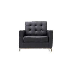 Design: Contemporary box-style armchair with tufted back and straight armrests