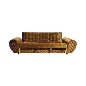 Material: High-density foam, velvet fabric, solid wood frame, metal legs with gold finish