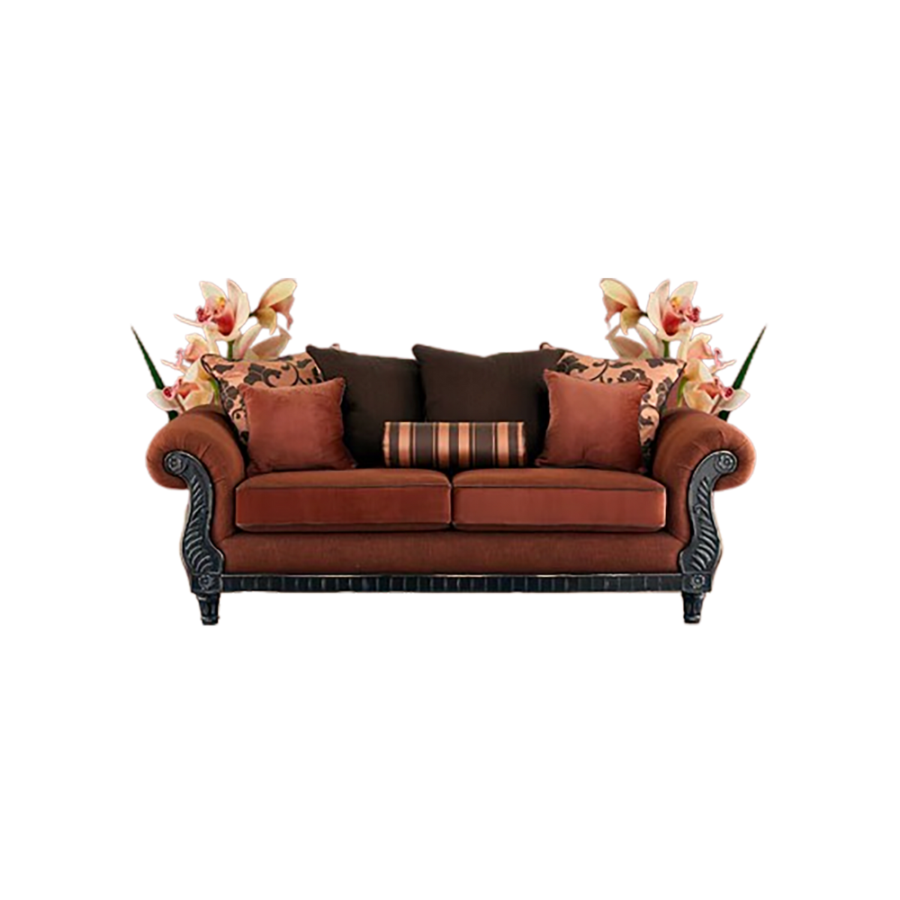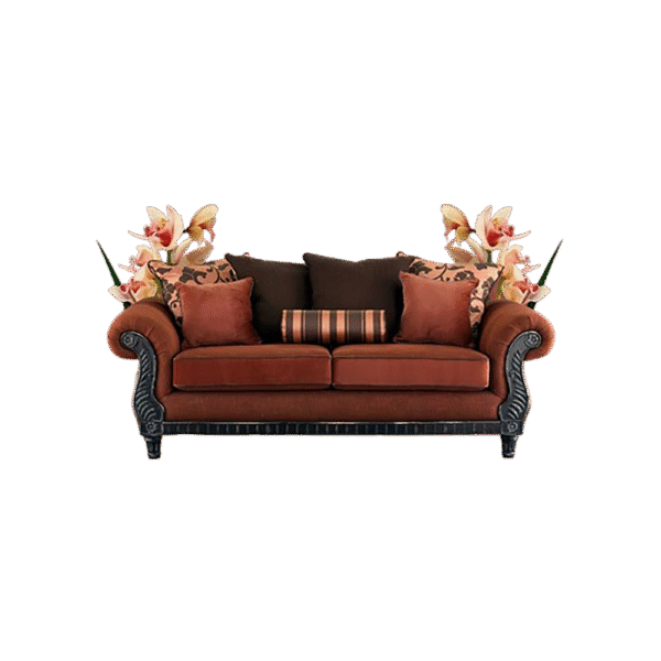 A traditional Dewan sofa with solid wood frame, rolled arms, and premium fabric upholstery. Elegant design with plush cushions for lasting comfort.