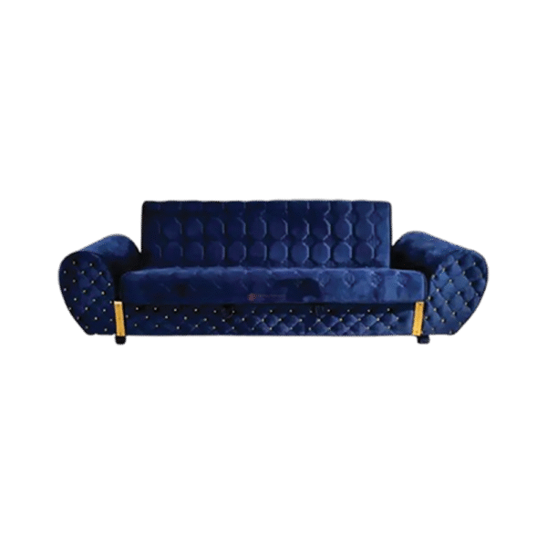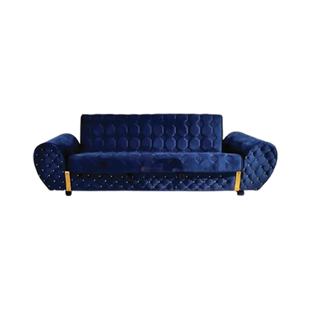 This elegant 3-seater sofa cum bed is upholstered in rich royal blue velvet with a quilted pattern for a luxurious finish. Supported by a solid wood frame and high-density foam cushions, it offers both comfort and durability while easily converting into a bed.